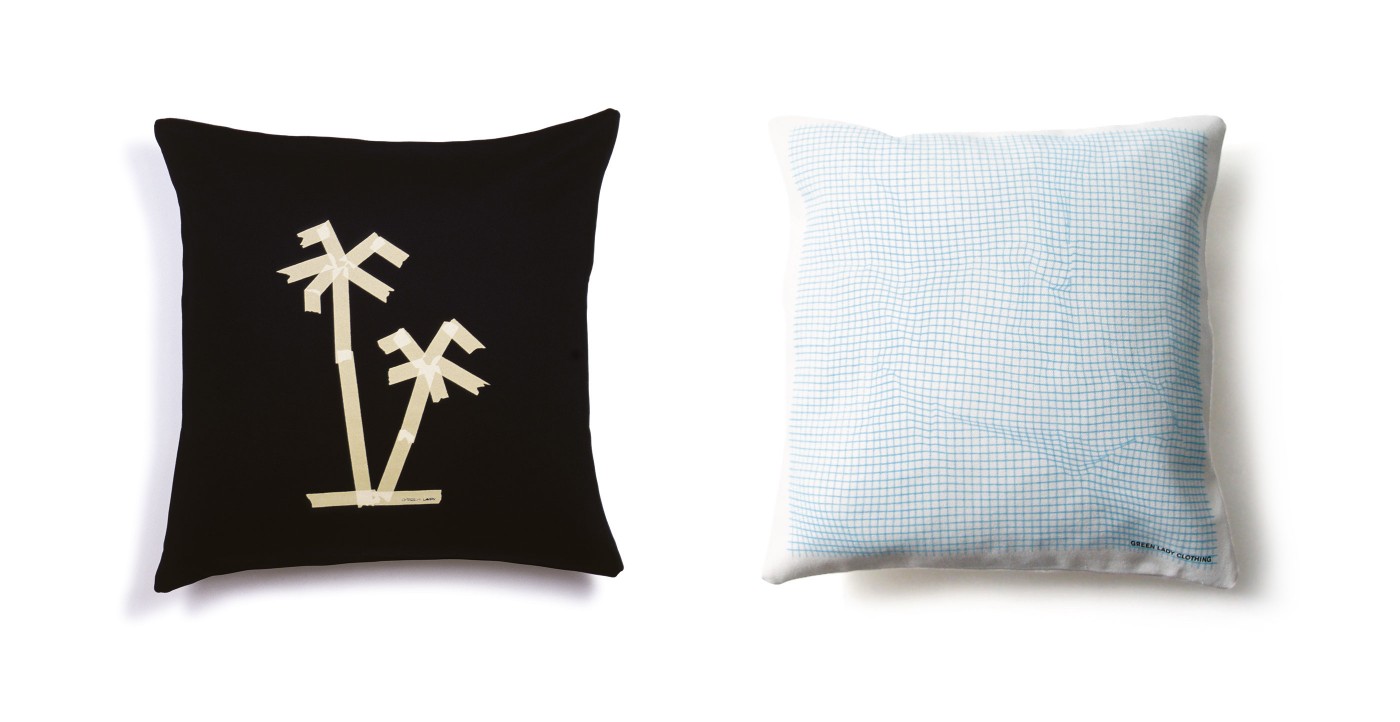 Tape Palm Tree pillow / Crumpled Grid pillow