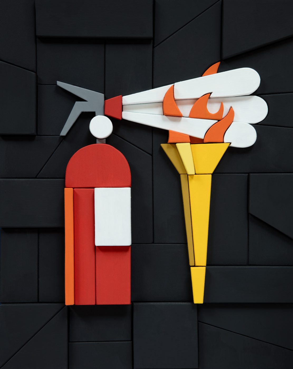 Full-page wood illustration for The Olympics Issue of The New York Times Magazine. Story about how Boston and other cities are refusing to host the games because of the chaos they bring. Illustration: Todd St. John. Writer: Carly Carioli.