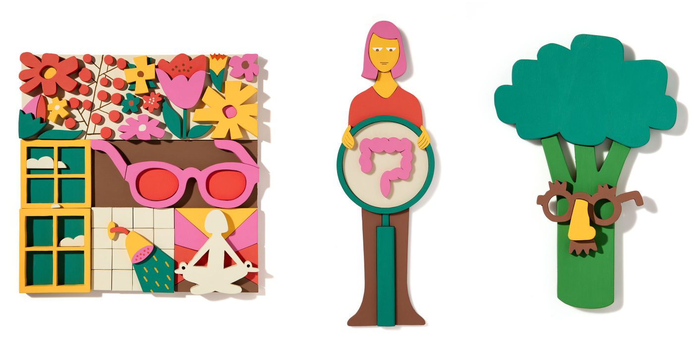 Wooden artwork for a special spring section in O Magazine about women’s health. Illustrations: Todd St. John.