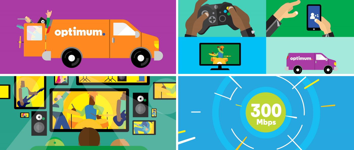 As a follow-up to our ongoing work for Optimum, The Martin Agency commissioned us to create a series of DRTV spots—The biggest challenge was to present a large quantity of offers, prices and phone numbers in an entertaining way without being overwhelming. Through simple stories, energetic characters and dynamic animations we were able to create spots that do a lot of heavy lifting, but are also fun to watch.