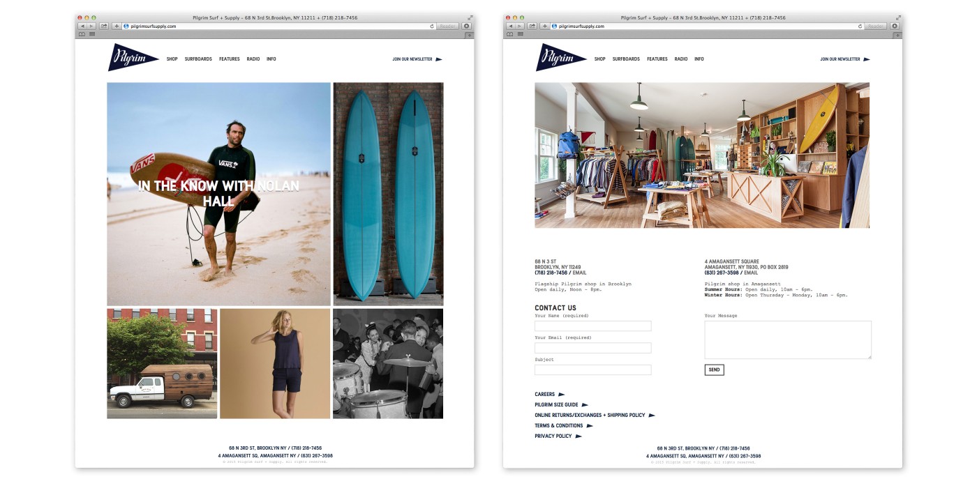 Identity and design forĀ Pilgrim, a Brooklyn-based surf and clothing shop opened in 2012 by Chris Gentile. Design & custom typography: Todd St. John.