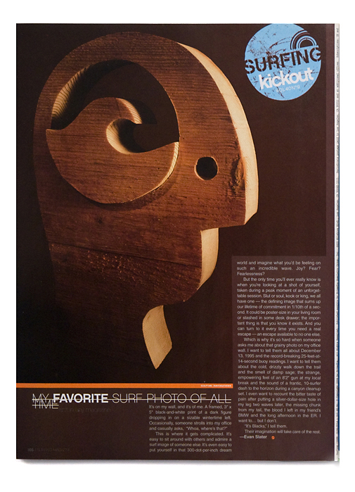 A series of illustrations for Surfing Magazine. They were created for their ‘kickout’ page, which is the last page in the issue and is usually a reflection on some thought or issue related to surfing. This first image below had to do with remembering a favorite surf photo. Models and photography: Todd St. John. Illustrations conceived in collaboration with Gary Benzel.