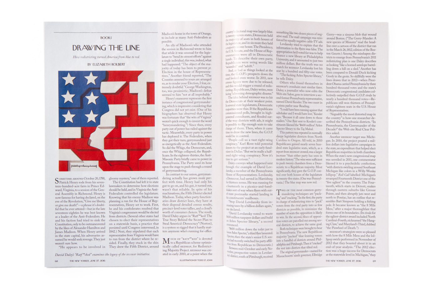 Illustration for The New Yorker about gerrymandering and the reshaping of the electoral landscape. Read the article here. Illustration: Todd St. John. Models: HunterGatherer.